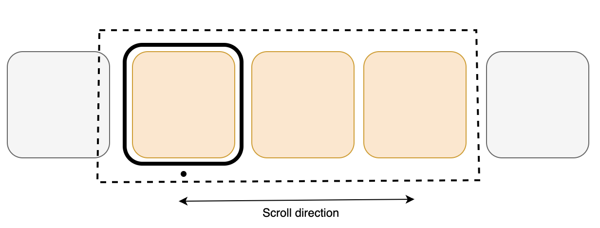 従来のFlatListコンポーネントと比較して、Carouselではアイテムが自動的にフォーカス可能になります。さらに、現在フォーカスされているアイテムを示す視覚的なインジケーターも表示されます。デフォルトの視覚インジケーターをオーバーライドすることも、カスタム表示を提供することもできます。Carouselは、内部でRecyclerListView(英語のみ)を使用します。RecyclerListViewはガベージコレクションとメモリ使用の効率が高いため、大きいリストでのパフォーマンスがFlatListよりも優れています。