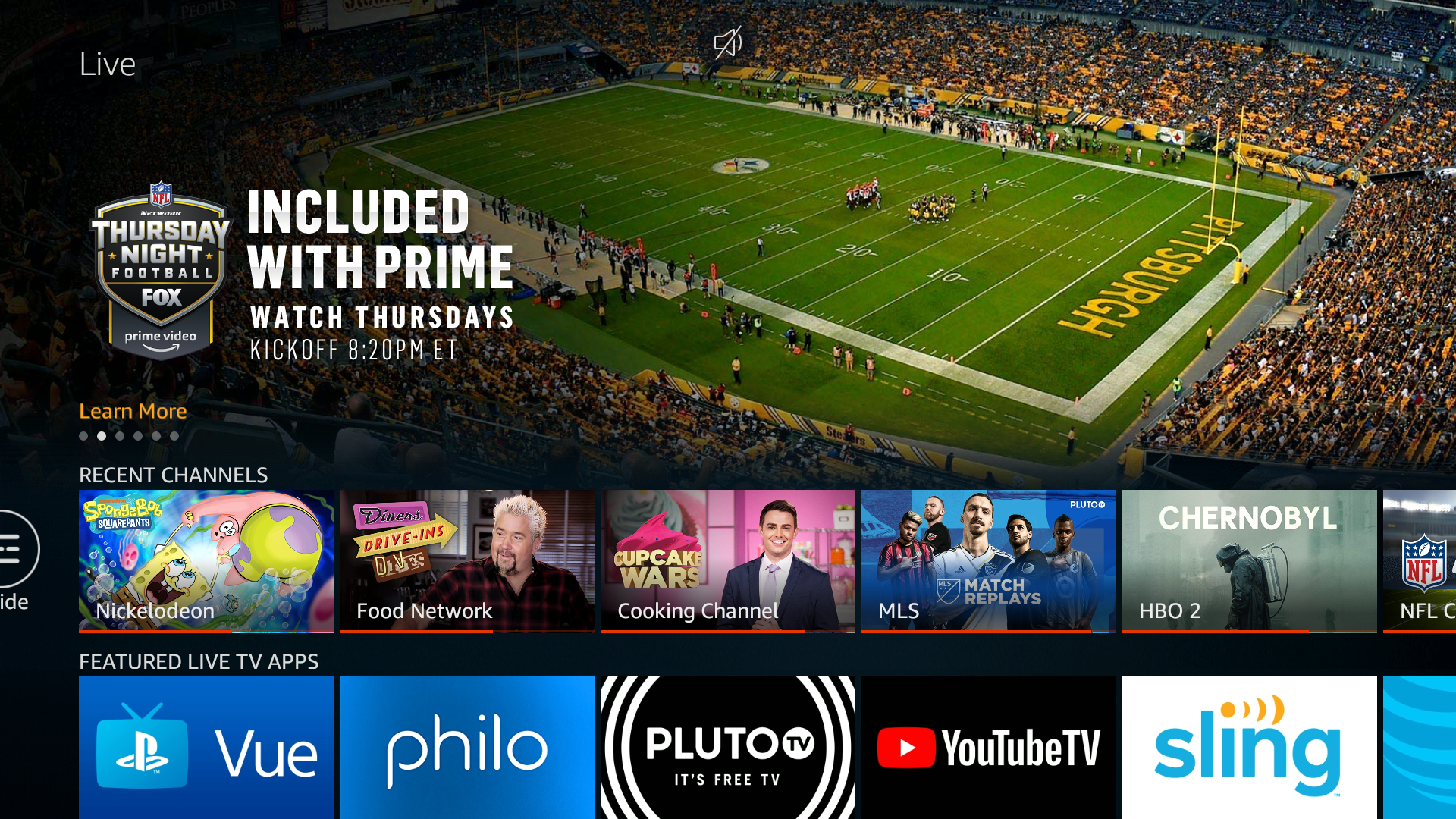 リニアTVの番組は、[ライブ] タブ(現在のリニアTVコンテンツ専用のタブ)に表示されます。