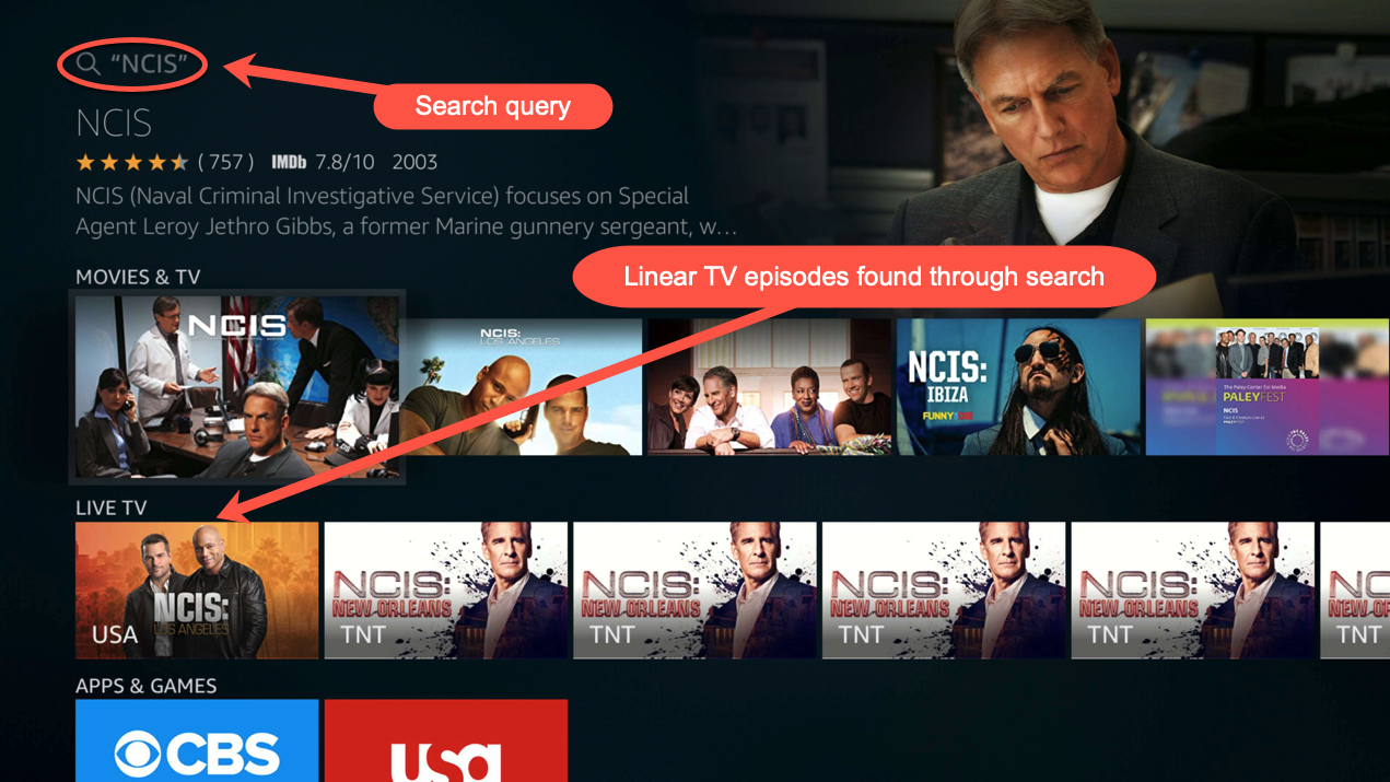 アプリとリニアTVが統合されると、そのアプリのインストールと認証が済んだユーザーは、すべてのFire TVデバイスで次の機能を利用できるようになります。