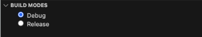 [Build Modes]セクションでは、Vegaアプリの [Debug] と [Release] のいずれかのビルドを選択できます。選択内容は、変更されない限り、それ以降のすべてのビルドに適用されます。